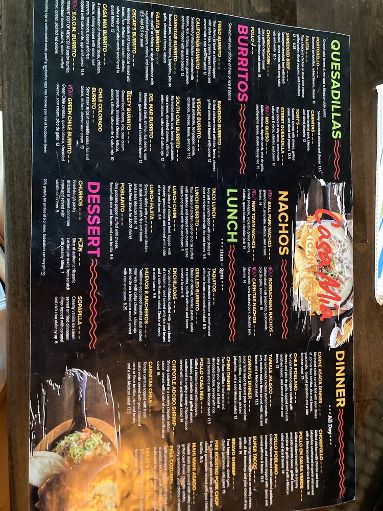 Casa Mia Mexican Kitchen New Town Menu (Update 2025)